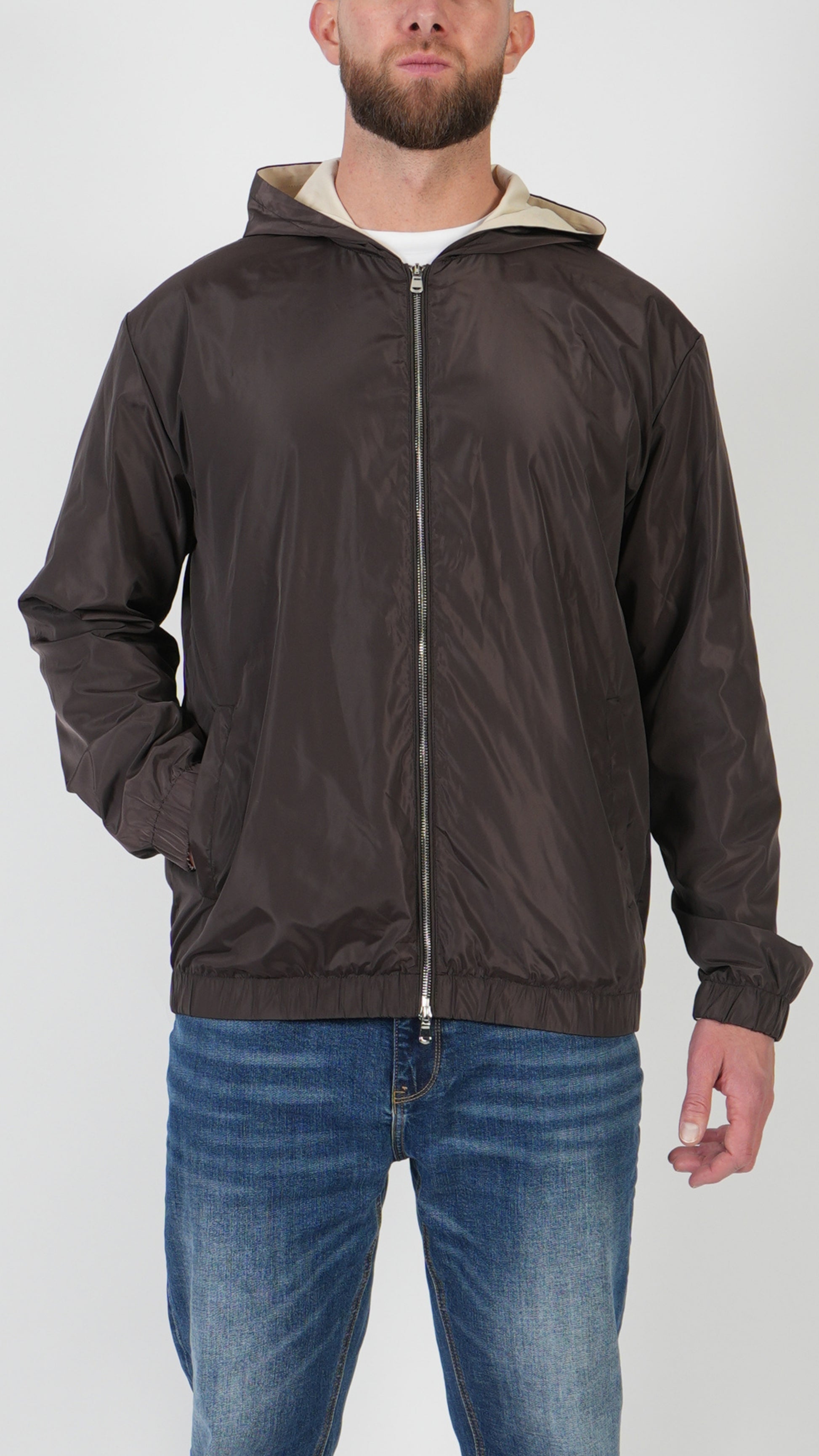 An elegant hooded jacket designed for the man who values refined style and everyday comfort. The subtle shining finish gives the jacket a luxurious look, making it the perfect statement piece to elevate any outfit. Lightweight, comfortable, and versatile, it combines effortlessly with our other products for a complete and sophisticated look.