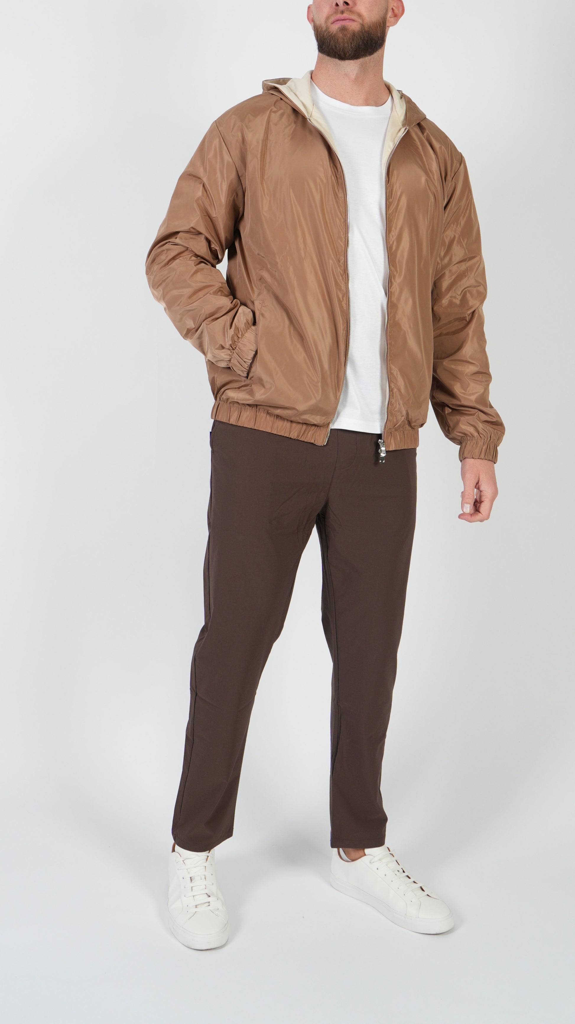 Une élégante veste à capuche conçue pour l'homme qui apprécie un style raffiné et un confort au quotidien. Sa finition légèrement brillante lui confère une allure luxueuse, en faisant la pièce maîtresse idéale pour sublimer n'importe quelle tenue. Légère, confortable et polyvalente, elle s'associe facilement avec nos autres produits pour un look complet et sophistiqué.