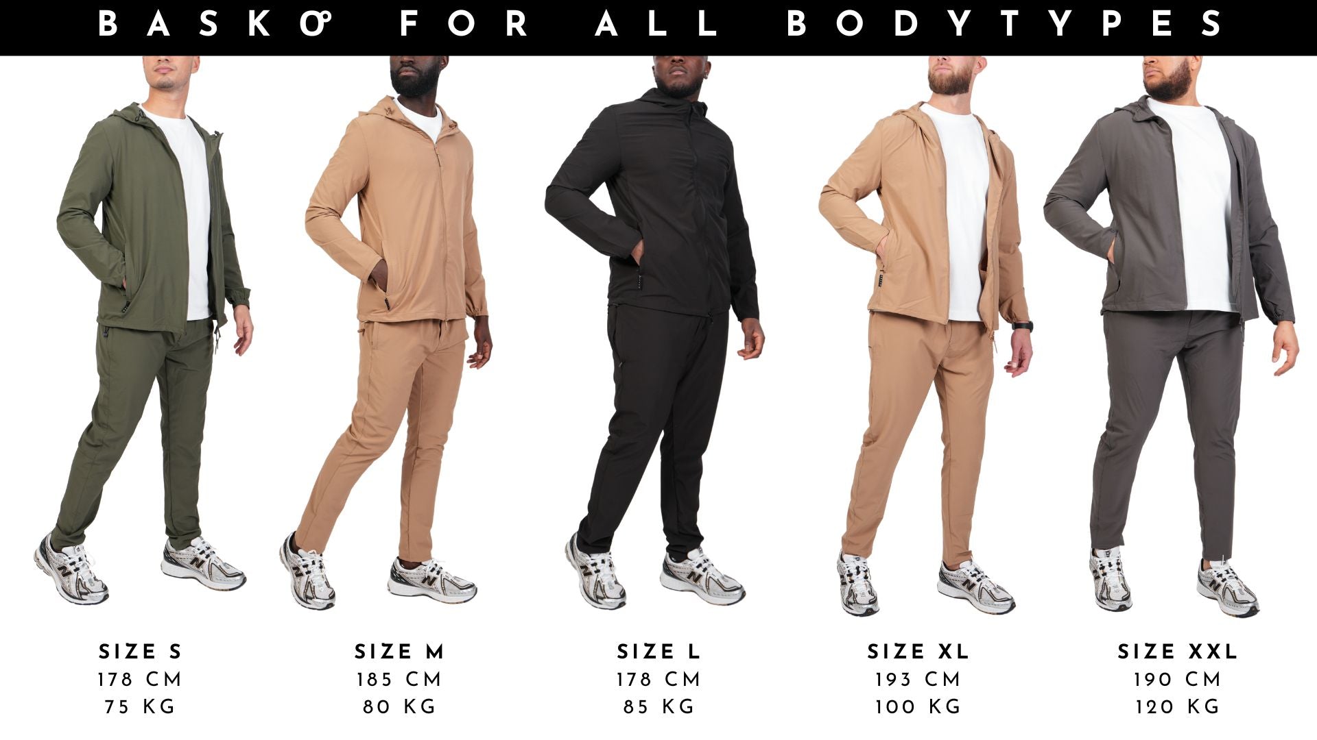 Klik HIER voor exacte maatvoeringen voor jassen en broeken.