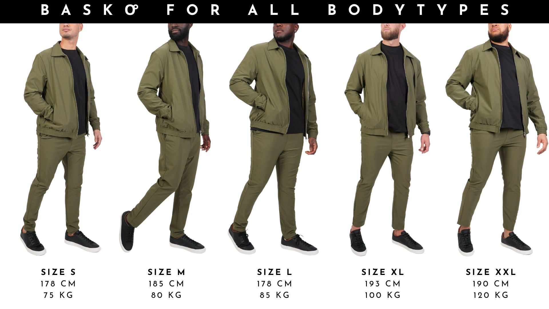 Klik HIER voor exacte maatvoeringen voor jassen en broeken.
